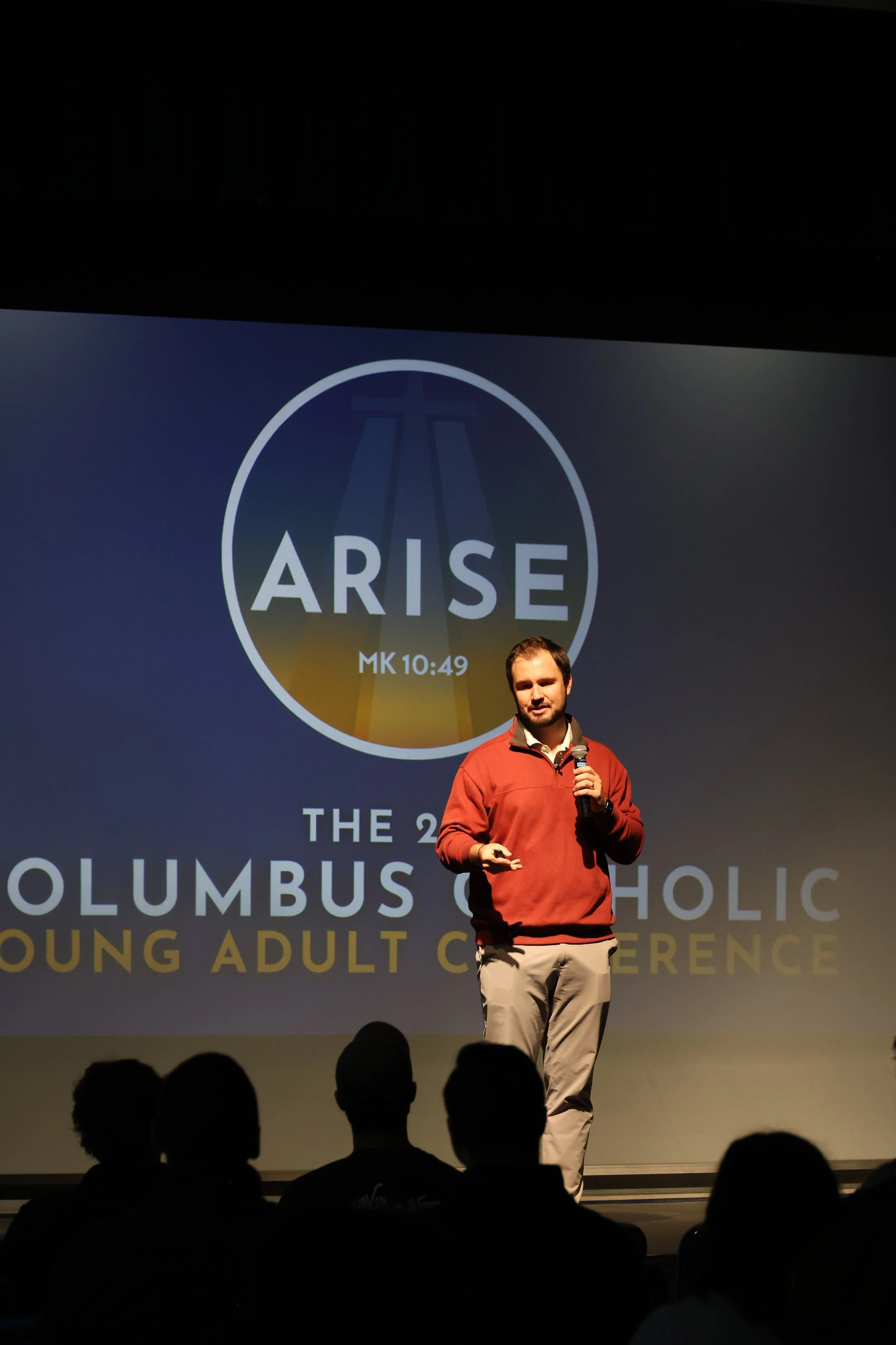 Paul J. Kim delivering an incredible keynote for all the attendees at ARISE - The 2025 Columbus Catholic Young Adult Conference.